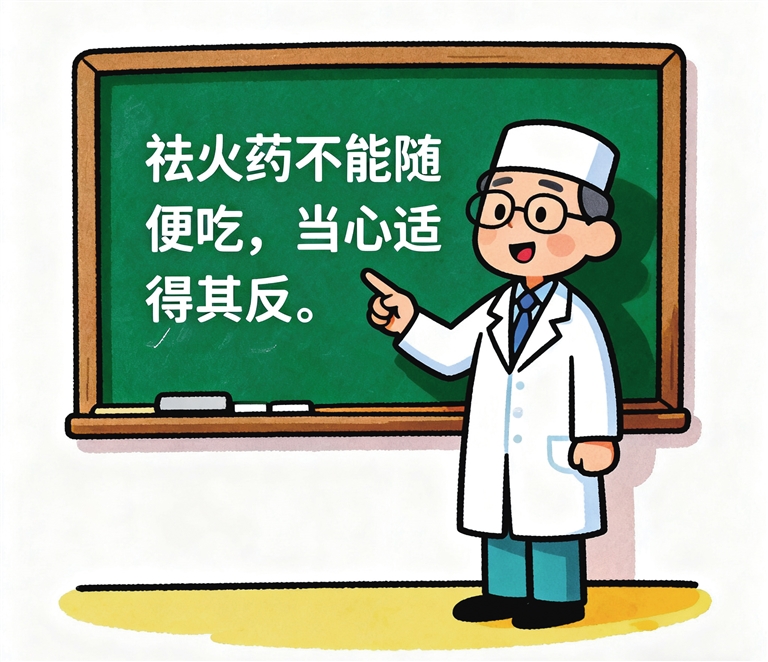 不少人只要出现一些上火症状,如口干舌燥、口腔溃疡、咽喉肿痛、长痘痘等,就会随便吃祛火药,这是不可取的。