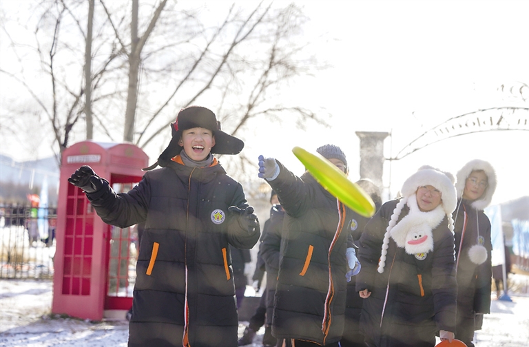 12月3日,吉林市第一实验小学学生在吉林市纳美山谷度假区体验雪地飞盘。当日,吉林省面向全省义务教育阶段学生设立的“冰雪假期”开启。12月3~7日“冰雪假期”期间,全省义务教育学校全部放假,学校不安排上课,不布置书面作业,鼓励学生积极参加各类研学、户外活动。吉林省内具有合格资质规范运营的滑雪场、滑冰场、A级旅游景区,推出学生门票减免、雪具租赁优惠等惠民政策,让学生们在假期时光中尽享冰雪运动的乐趣。