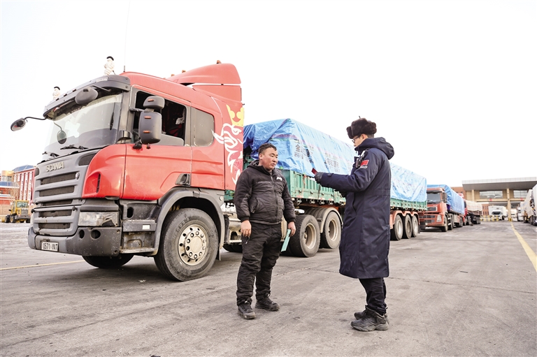 新报讯(草原云·北方新报记者 特木其乎 通讯员 郭鹏杰) 12月23日,5辆货运车辆满载106头改良种奶牛抵达二连浩特公路口岸货运通道,内蒙古出入境边防检查总站二连出入境边防检查站针对严寒天气下活畜运输通关时效要求高的特点,专门开通“快捷通道”,为出口企业提供“优先查验+即时放行”的便利化通关举措,确保种牛以最快速度通关。据了解,该批改良种奶牛来源地为内蒙古自治区巴彦淖尔市磴口县,共计出口300头,将分批从二连浩特口岸出境。
