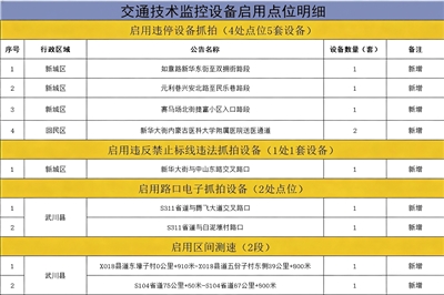 一、启用4处交通技术监控设备,对机动车违反规定停车的交通违法行为进行抓拍;