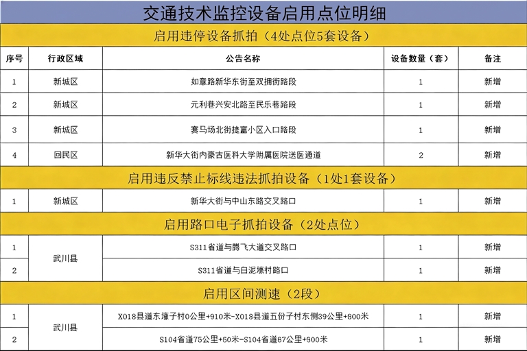 呼和浩特新增一批电子警察 2026年1月15日上岗