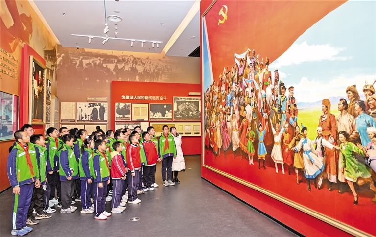 1月10日,呼和浩特市赛罕区金桥小学组织学生走进内蒙古博物院“解放之路”展厅,开展“红色铸魂”主题实践活动。在讲解员的引导下,学生们驻足于展厅珍贵的文物前,认真聆听每一件展品背后的动人故事,在历史的浸润中追寻红色足迹,传承革命精神。