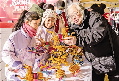 现场气氛在热烈激昂的社火表演中迅速升温。主舞台好戏连台,相声、快板、杂技等节目精彩纷呈,民俗文化专家曹建成还为观众娓娓道来春节背后的传统故事。广场周边的新春体验区更是欢声不断,市民们在“马上成功”互动巡游区迎接五路祥瑞祝福,在“马上有福”集福打卡区写福字,在“马上好运”福运抽卡区抽取惊喜。