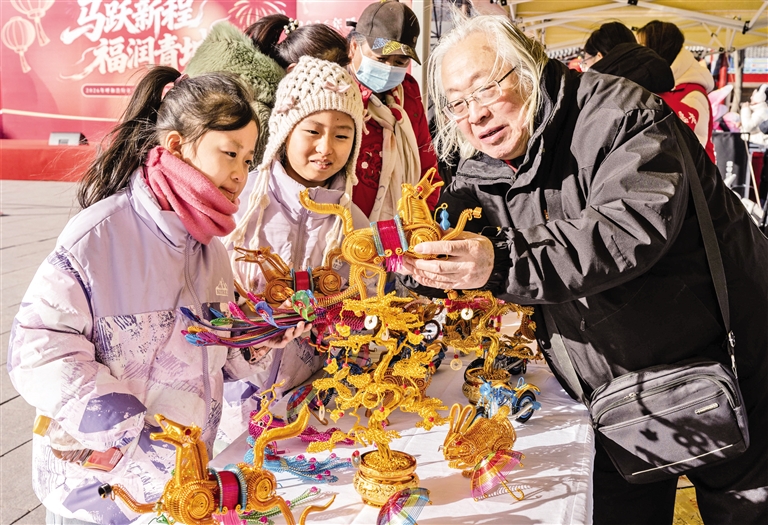 同步开放的新春市集同样吸引众多市民驻足。大家在此体验非遗手作、挑选心仪年货、参与文明趣味游戏、享受便民公益服务,深深感受到青城春节的温暖与活力。此外,健康义诊、趣味识草、福气竞技等互动项目也让游客踊跃参与。