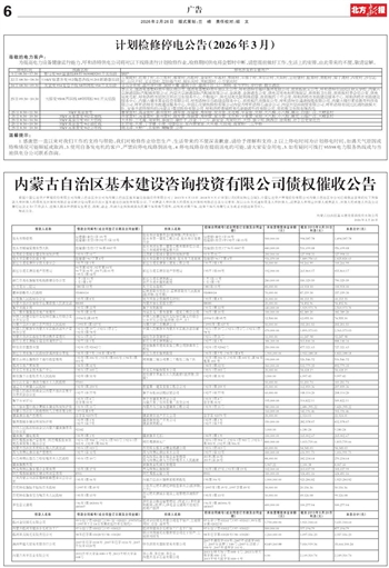内蒙古自治区基本建设咨询投资有限公司债权催收公告