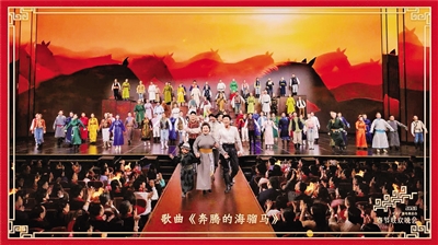 春晚上,奔腾的海骝马呼应着总书记的殷切嘱托,展现出一场跨越时空的精神对话,其中最核心的纽带,正是“铸牢中华民族共同体意识”。海骝马的奔腾,不是一匹马的独舞,而是千军万马的齐头并进。正如中华民族的复兴伟业,绝非某一民族的“独角戏”,而是56个民族手拉手、心连心的“大合唱”。《奔腾的海骝马》超越了地域与民族的界限,唤起全体中华儿女共同的文化记忆与情感共鸣。