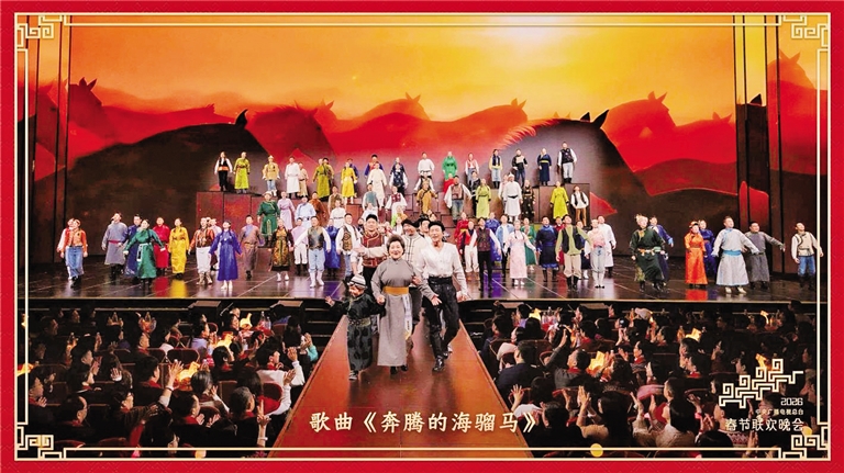 春晚舞台上,95名演员如万马奔腾,舞步铿锵,歌声高亢,将草原儿女的豪情与新时代的奋进姿态融为一体。这匹“海骝马”,不仅是蒙古马精神具象,更是中华民族不畏艰难、一往无前精神的写照。