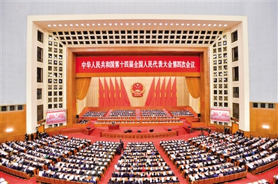 3月9日,十四届全国人大四次会议在北京人民大会堂举行第二次全体会议。 摄影/新华社记者 李 涛
