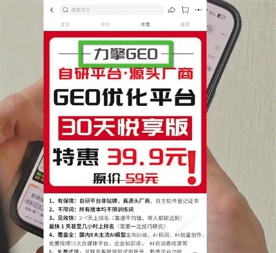 按照业内人士爆料,记者在多个网络平台查询搜索到一项名为GEO的业务,从事该项业务的服务商号称,用户只需支付相应费用,它就能在各大主流AI大模型里,让客户的产品榜上有名;让客户的商品广告,成为AI模型给出的“标准答案”。