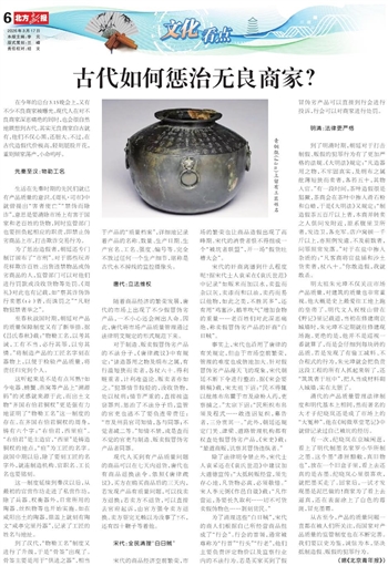 生活在先秦时期的先民们就已有产品质量的意识。《周礼·司市》中就曾提出“害者使亡”“禁伪而除诈”,意思是要清除市场上有害于国家和老百姓的货物,同时监管部门也要担负起相应的职责,即禁止伪劣商品上市,打击欺诈交易行为。