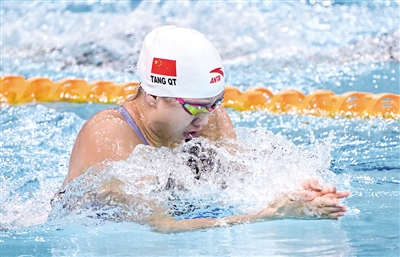 唐钱婷以1分05秒91收获女子100米蛙泳金牌。她总结道:“(这次比赛对心态)有很大帮助,前期这四个月的训练(状态)一直很低迷,每天都觉得很累,技术感觉也不好,一直处在压力下,精神上很容易产生负面情绪。这次出来比赛,我没想过游得好不好、拿第几,也算是意外的收获。”