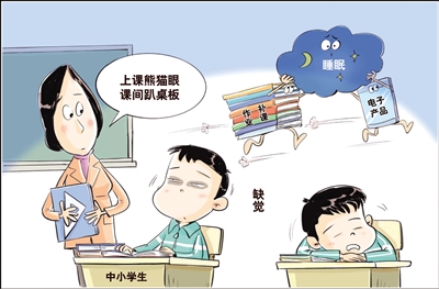 “上课熊猫眼,课间趴桌板”,不少中小学教师坦言,很多学生因为缺觉,上课无精打采,课间趴在桌上睡觉。