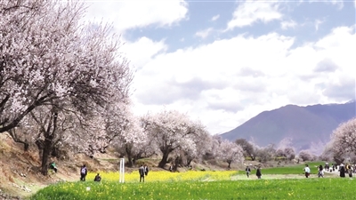 去林芝看桃花,必去被誉为“桃花第一村”的嘎拉村,每年的林芝桃花节都在此村举办。这里的桃花广阔密集,还极具层次感。500亩野生桃林铺展于雪山脚下,尼洋河畔的粉色花海与青稞田交相辉映,令人陶醉。在村寨中,老人、小孩悠闲地坐在桃花树下谈笑玩乐,好一幅“黄发垂髫,并怡然自得”的桃花源景,让人想留在此处生活。满眼的桃花与黄色的油菜花地相映成趣,不经意间就惊艳了整个春天。这一眼的美丽,足以让人铭记一整年。