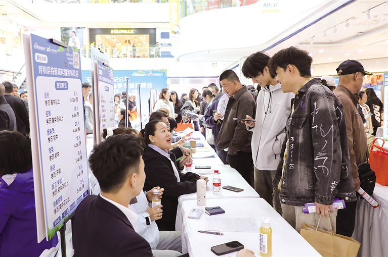 3月28日,呼和浩特市玉泉区2026年“春风行动”暨就业援助季专场招聘会在七彩城购物中心举办。据了解,本次招聘会借助商圈“烟火气”为就业服务“聚人气”,现场121家用人单位提供岗位3337个,涵盖行政后勤、工程技术、新媒体设计、农业生产、电商运营及展厅接待等岗位类别。摄影/草原云·北方新报首席记者 牛天甲