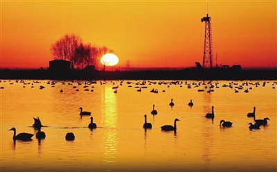 这几天,包头市土默特右旗黄河湿地迎来绝美风光。红日跃出天际,霞光铺满水面,成群天鹅化作灵动剪影,它们时而引颈远眺,时而低头理羽,鸟影与村落相映,勾勒出一幅静谧壮阔的生态画卷,尽显黄河岸线的自然诗意。(据央视新闻客户端)