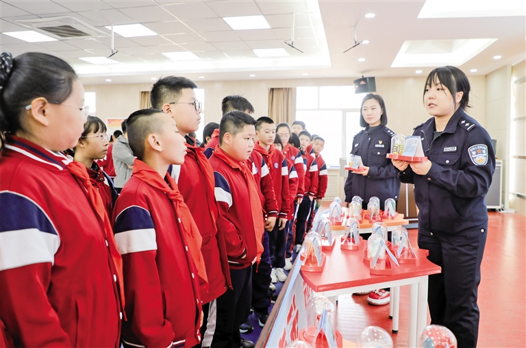 4月1日,民警向学生们介绍毒品种类。当日,呼和浩特市回民区县府街小学联合呼和浩特市强制隔离戒毒所,开展全国中小学生安全教育日禁毒法治主题宣讲活动。当日,戒毒所民警走进校园,通过课堂授课、互动问答、现场答疑等形式,向学生普及禁毒知识,讲解毒品危害与防毒技巧,深化青少年法治安全教育,筑牢校园防毒拒毒思想防线,助力平安校园建设。
