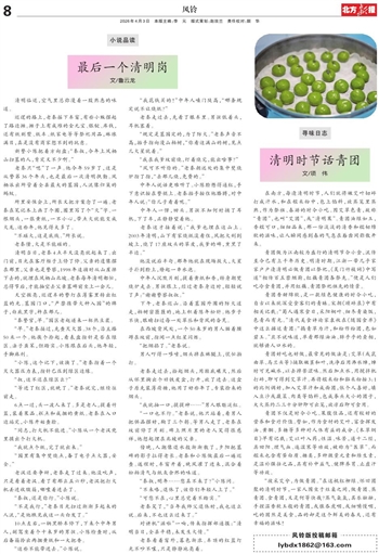 在南方,每逢清明时节,人们就将嫩艾叶切碎打成汁水,和在糯米粉中,包上馅料,放蒸笼里蒸熟,作为祭祖、春游的时令小吃。因艾草色青,故称“青团”,也叫“艾团”,或“清明果”。青团油绿如玉,香糯可口,细细品来,那一份淡淡的清香和糯韧绵软的滋味,让人瞬间感到春的气息在唇齿间弥散开来。