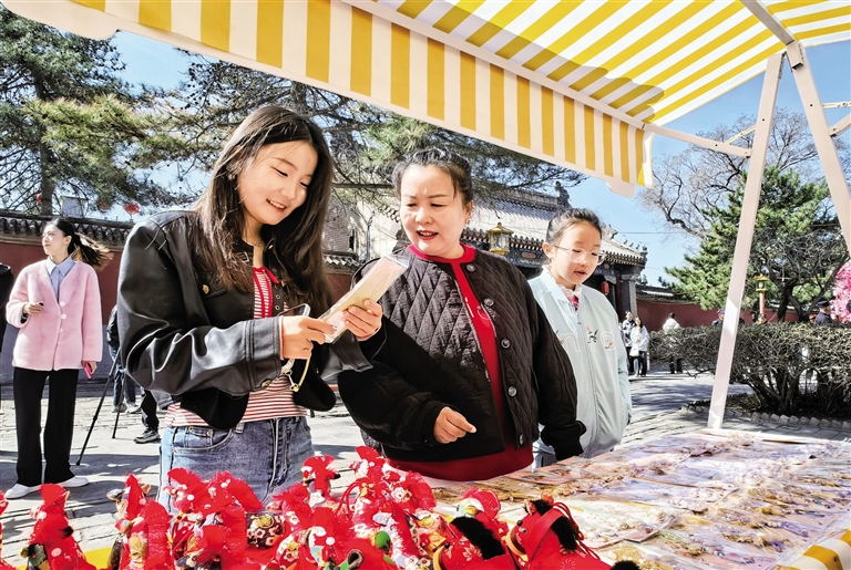活动现场,武术表演、歌曲演唱等精彩文艺表演吸引市民游客纷纷驻足;NPC巡游队伍格外引人注目,十余位“花仙子”身着汉服穿梭于桃林与古建之间,与游客互动,生动还原古时游园盛景;文创市集内,各类公主府文创周边产品琳琅满目,兼具创意与实用性;趣味游戏互动区,投壶、捶丸、套圈等传统小游戏让大人小孩齐参与,在欢声笑语中感受传统民俗乐趣……