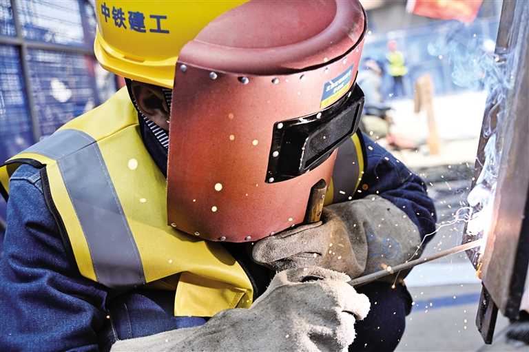 4月8日,在青岛市南京路1号项目比赛现场,一名选手在电焊工个人赛中。近日,由青岛市总工会组织的青岛市2026年劳动竞赛系列活动启动。活动旨在通过“以赛促干”激发职工凝聚匠心,提升创新创造能力、安全操作技能以及工程质量把控水平,助力项目建设提质增效。摄影/新华社记者 李紫恒