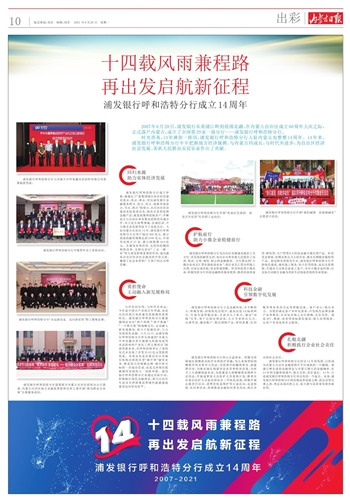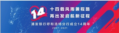 时光荏苒,14年弹指一挥间,浦发银行呼和浩特分行入驻内蒙古也整整14周年。14年来,浦发银行呼和浩特分行牢牢把握地方经济脉搏,与内蒙古同成长,与时代共进步,为自治区经济社会发展、各族人民群众安居乐业作出了贡献。