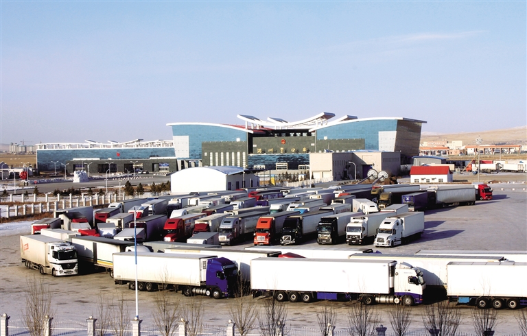 每天,满洲里口岸汽笛阵阵,车辆如织。中欧班列在中俄两国国门之间的铁路线上往返穿梭;公路口岸内,一辆辆悬挂着“TIR”(国际道路运输组织)标识的货柜车准备接受查验。在满洲里口岸,现代化、数字化、电子化查验方式已占据主导地位,基础设施齐备,服务功能完善,集散能力很强,铁路、公路、空运立体交通同国内国外联网,四通八达。