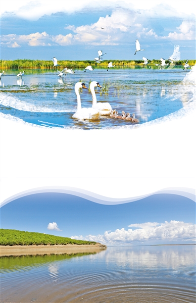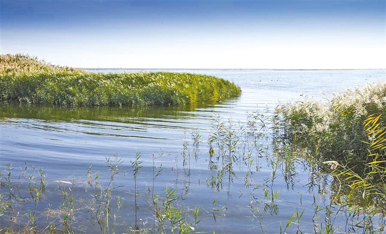 近处,青翠的苇丛生机勃勃,灵动的赤麻鸭时隐时现;远处,波光潋滟,水天一色。立于一艘快艇,看浩渺天际,水雾氤氲,淡烟浅色,宛如一幅水墨画。