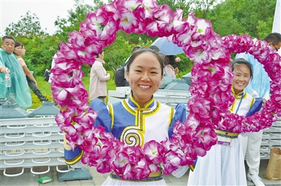 在飞船发射地,身穿节日盛装应邀观看发射盛况的南斯勒玛、乌云苏依拉两位民族团结进步模范引人注目。