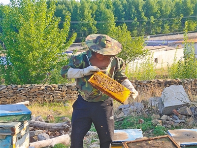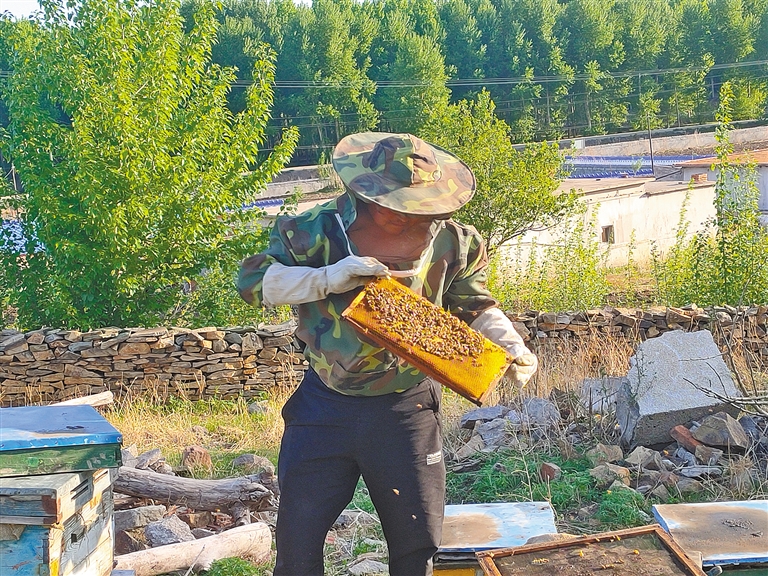 “分蜂的时候特别忙,经常从早上八九点分到下午三四点,中间都没时间休息。”在王江的精心培育下,他的蜂群达到13群,能产400余斤蜂蜜,每斤销售30元,每年增收1.5万元左右。