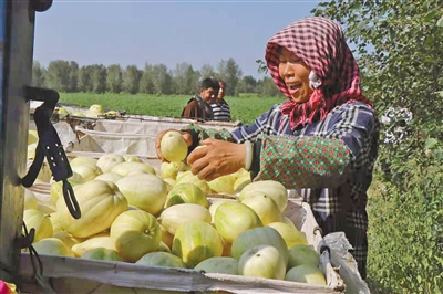 “从种到收,全程雇人。小小的香瓜,竟改变了一户户村民的命运。”种瓜大户王国华是土生土长的电报局村人,他给记者算了一笔账:“种玉米,一亩地收入1000多块钱。种红干椒,每亩收入四五千块钱。种香瓜,每亩收入五六千。”