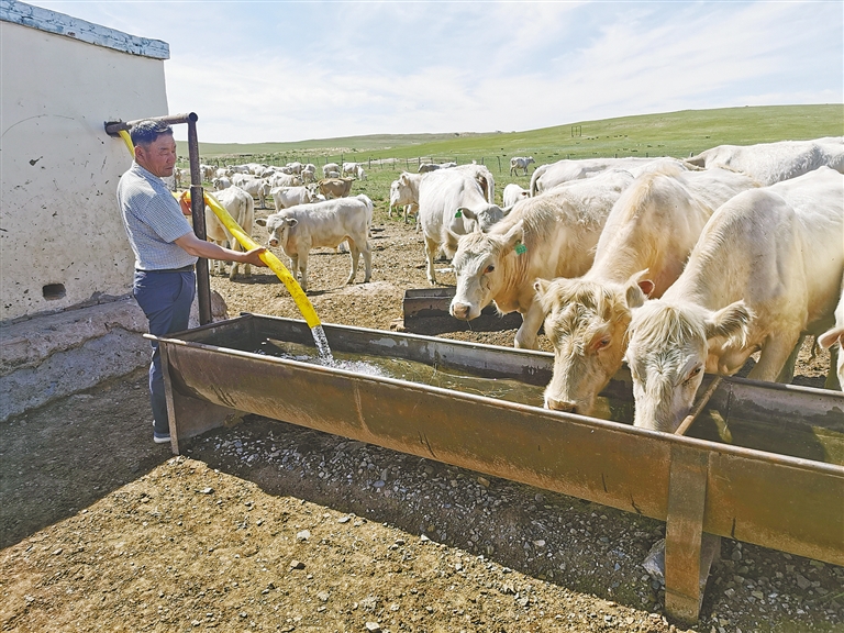 去年,嘎查组织外出学习,回来后,苏乙拉格日勒按照外地学回来的模式,新建了一个棚圈,将牛集中起来喂养,尝试精细化养殖。“精细化养殖果然效果好,科学配料,科学饲养,既提高了肉牛品质,也能更好地保护草原。”苏乙拉格日勒今年准备建一个更大的棚圈,继续将精细化养殖推广下去。