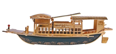 红船主体由金玉镶制而成,采用宫廷金钿工艺不仅使其外表金碧辉煌,更为难得的是,船舱内部结构完整明细,全部鎏金,当年红船内简易的桌椅,如今都变得金光闪闪,使其整个船内呈现出“黄金满仓”的耀目景象,巧夺天工,细节完美。