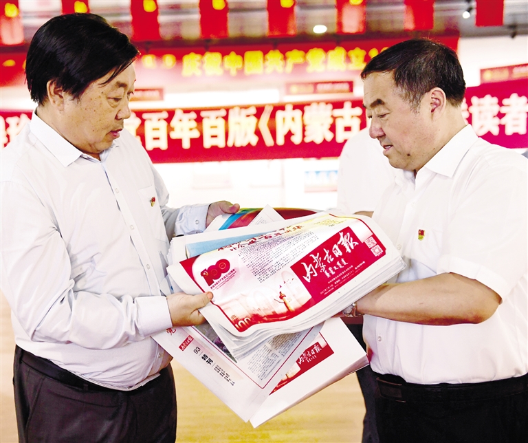 为庆祝中国共产党成立100周年,这一天,《内蒙古日报》用100版特刊致敬。