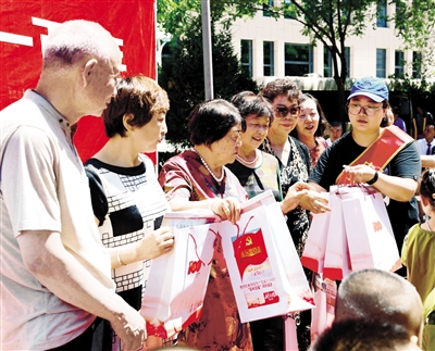 在呼和浩特民族学院,我们为那里的师生赠送了《内蒙古日报》百版特刊。此外,我们还走上街头,把报纸传递到了市民手中。