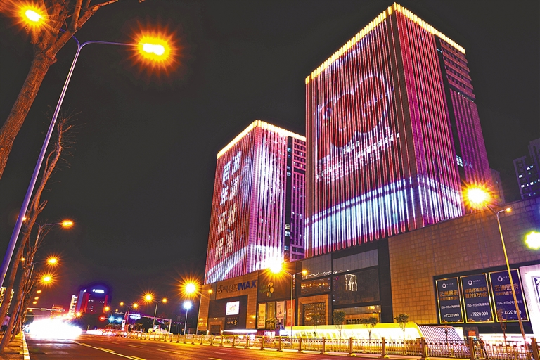 夜幕降临 华灯初上。首府用城市灯光秀,表达对党最真诚的祝福。本报记者 王晓博 摄