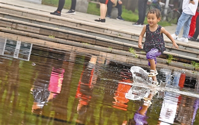 炎炎夏日,萌娃在呼和浩特市公主府公园踏水嬉戏,无忧无虑的笑声感染着周围过往的行人。