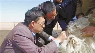 每年初春开始,当清晨的第一缕阳光洒向草原,畜牧研究所绒毛羊研究室主任刘斌研究员和团队成员就开始了一天的跋涉。他们要进驻牧户家,帮助牧民鉴定种羊、进行生产指导,解决他们在绒山羊种养殖过程中遇到的实际难题。