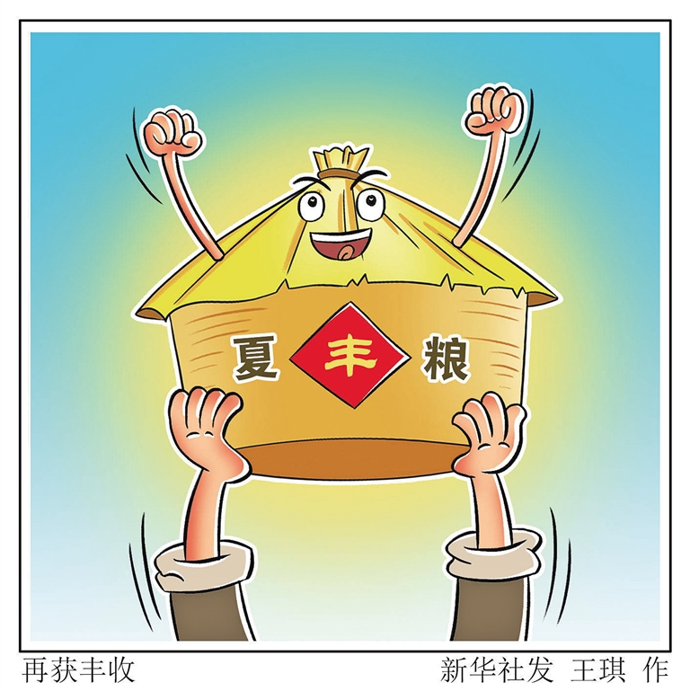 今年我国夏粮再获丰收,为全年粮食产量保持在1.3万亿斤以上打下坚实基础,为经济社会发展大局提供有力支撑。新华社发 王琪 作