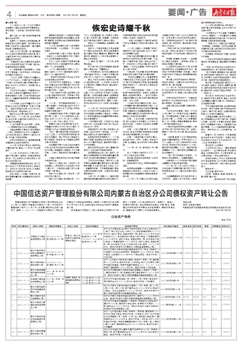 中国信达资产管理股份有限公司内蒙古自治区分公司债权资产转让公告