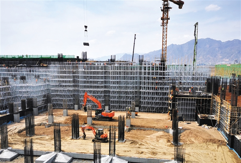 新城区北垣小学分校项目正在进行首层柱板施工;