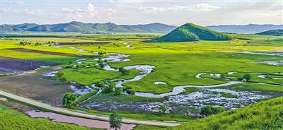 阿荣旗查巴奇鄂温克族乡文布奇村,远山如黛,连绵起伏;溪流蜿蜒,柔水潺潺,如诗似画。文/图 刘振科