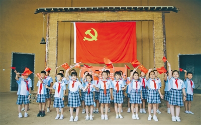 7月17日上午,为铭记革命历史,传承红色基因,呼和浩特市赛罕区大学路小学二年级一班走进大青山抗日游击革命根据地展馆开展“红领巾在胸前,党和国在我心”爱党爱家乡主题实践活动,重温庆祝中国共产党成立100周年大会共青团员和少先队员代表集体献词。