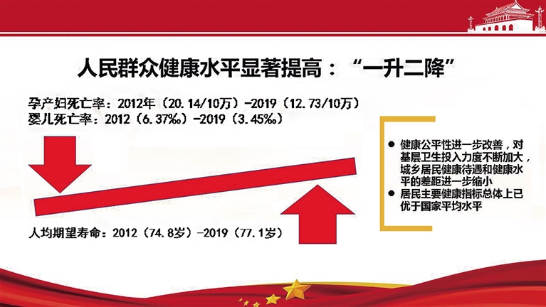 医疗服务效率和水平不断提升,推动38所医院胸痛中心、29所卒中中心建设,27所县级医院达到三级水平,平均住院日从2012年的9.62日下将到2019年的9.2日。