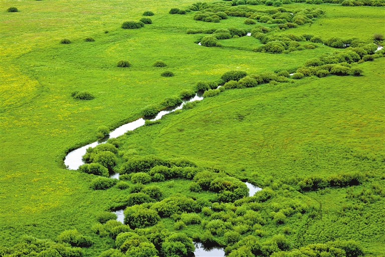 陈巴尔虎草原特尼河湿地,万顷碧野,绿草如毯,溪流徘徊,柔情缠绵,令人心旷神怡。文/图 高根宝