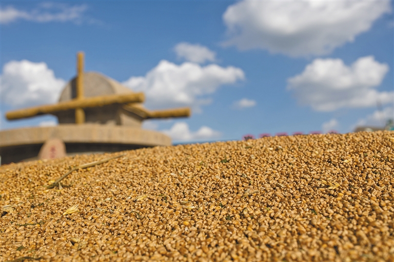 “2021年,我们村小麦种植面积达到1.4万亩,平均亩产可达1100~1200斤。”新乐村党支部书记薛志强介绍,近年来,通过政府实施大破大立高标准农田改造项目,新乐村实现了小麦集中连片种植。