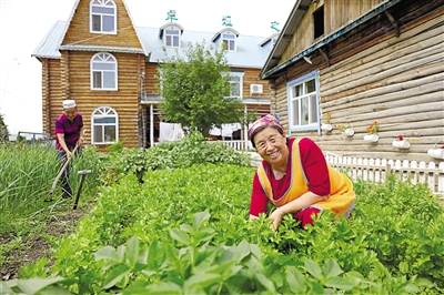 卓娅家对面住着当地旅游协会副会长潘乐杰,他家的民宿叫做“潘乐杰之家”。■下转第3版 ■上接第1版 “我虽然是汉族,但是我也是从小吃俄餐长大的。”提起小镇的往事,潘乐杰有说不完的话。