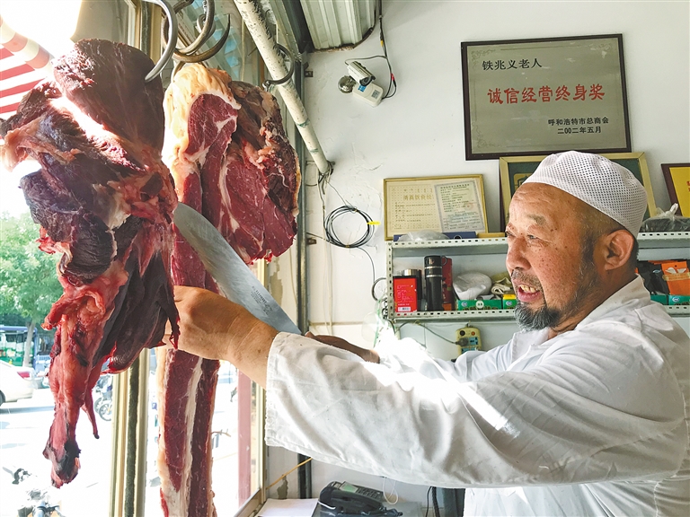 数十年的诚信经营,铸造出一个品牌。2001年,“铁兆义”正式成为注册商标,也成为呼和浩特市“放心肉”的代名词。