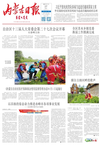内蒙古日报 一版要闻 01 2021-07-271 2021年07月27日 星期二