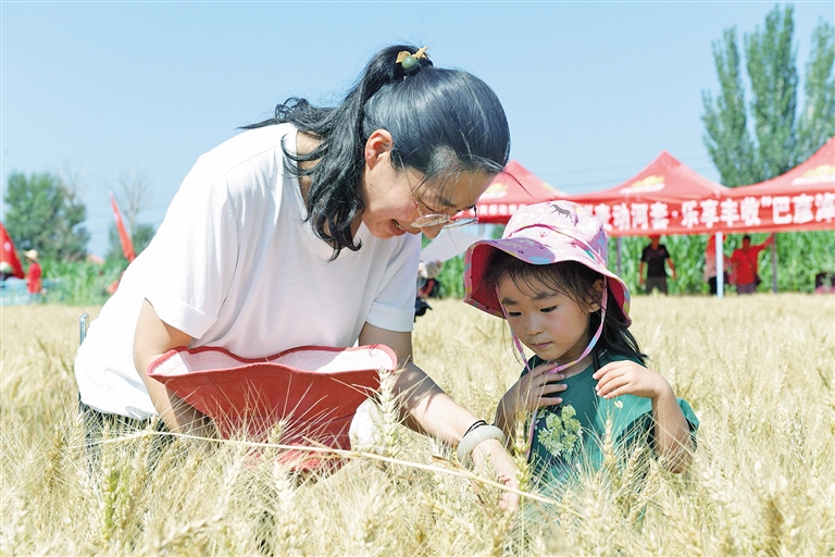 近日,临河区干召庙镇黄羊村3100亩小麦套玉米农业标准化种植示范园区的田间地头热闹非凡,巴彦淖尔日报社联合临河区干召庙镇人民政府举办的“‘麦’动河套·乐享丰收”“大博金田”杯镰刀割麦趣味体验活动在这里举行。
