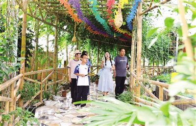 游客在哈沙图村光亚“云上农场”参观游览。本报记者 安寅东 摄