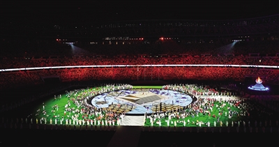 奥运圣火缓缓熄灭,圣火台缓缓闭拢,还原成一个球形。在现场运动员和工作人员的欢呼声中,人们向东京奥运会说再见。